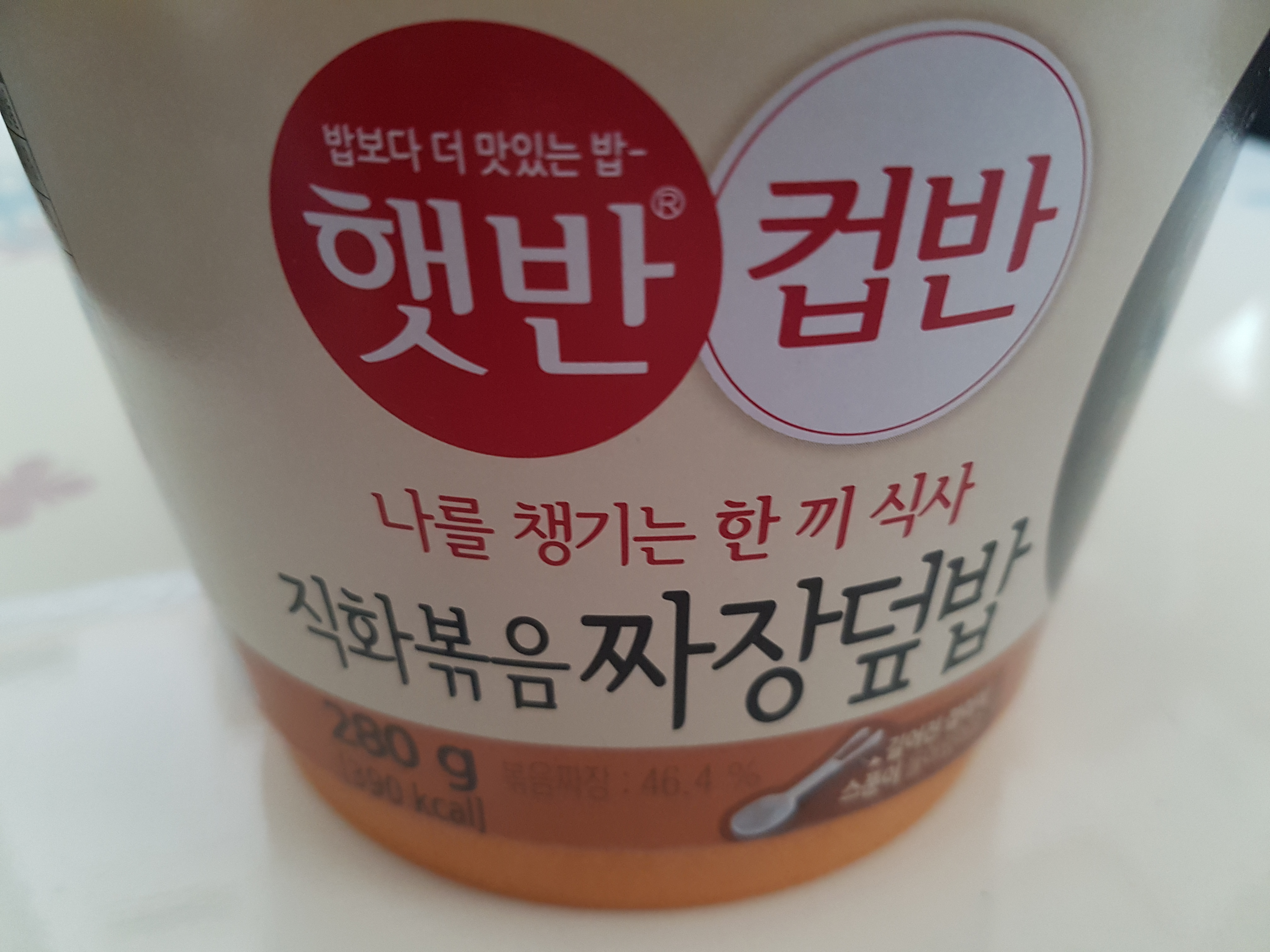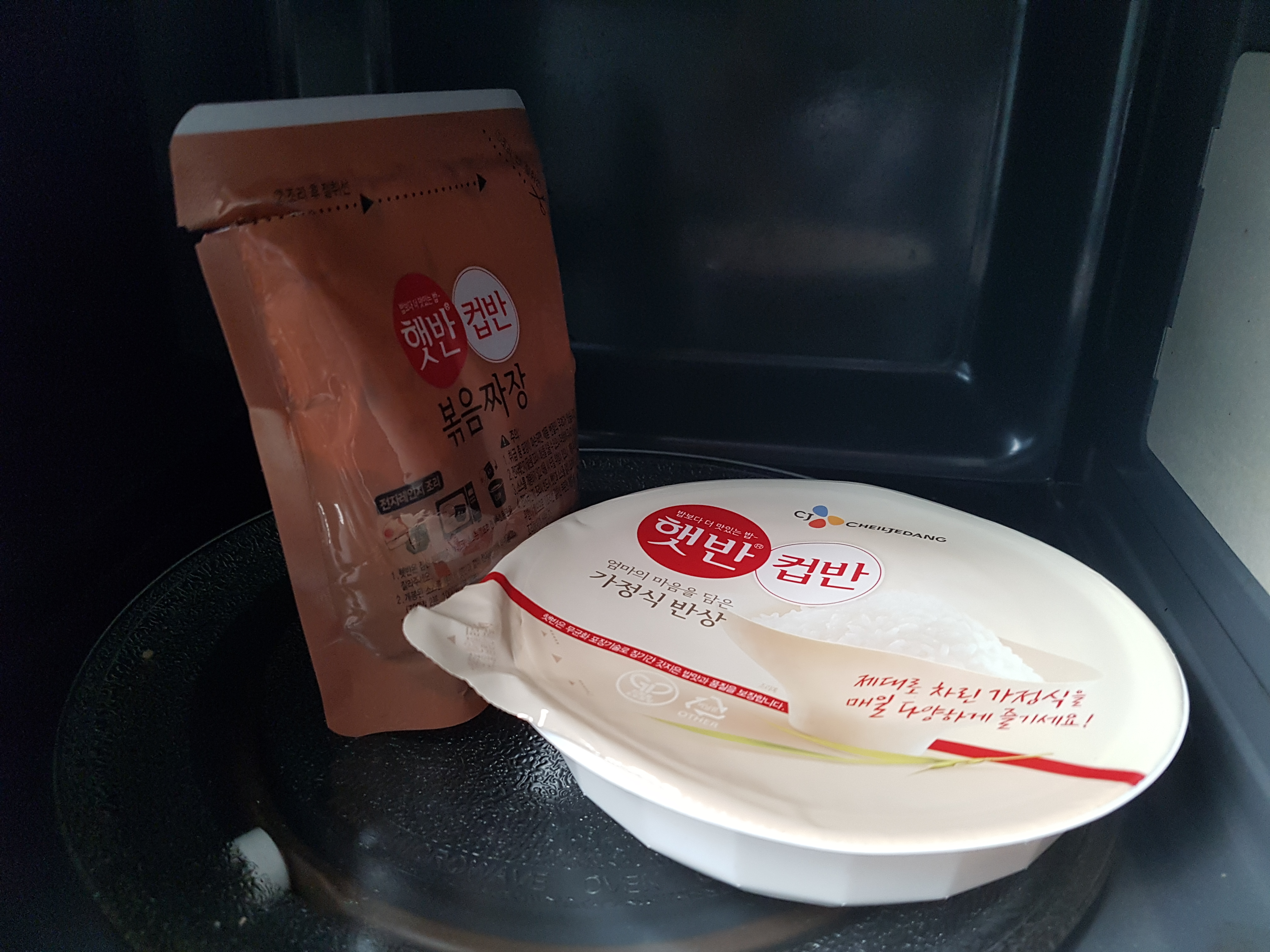 햇반과 볶음짜장소스, 숟가락