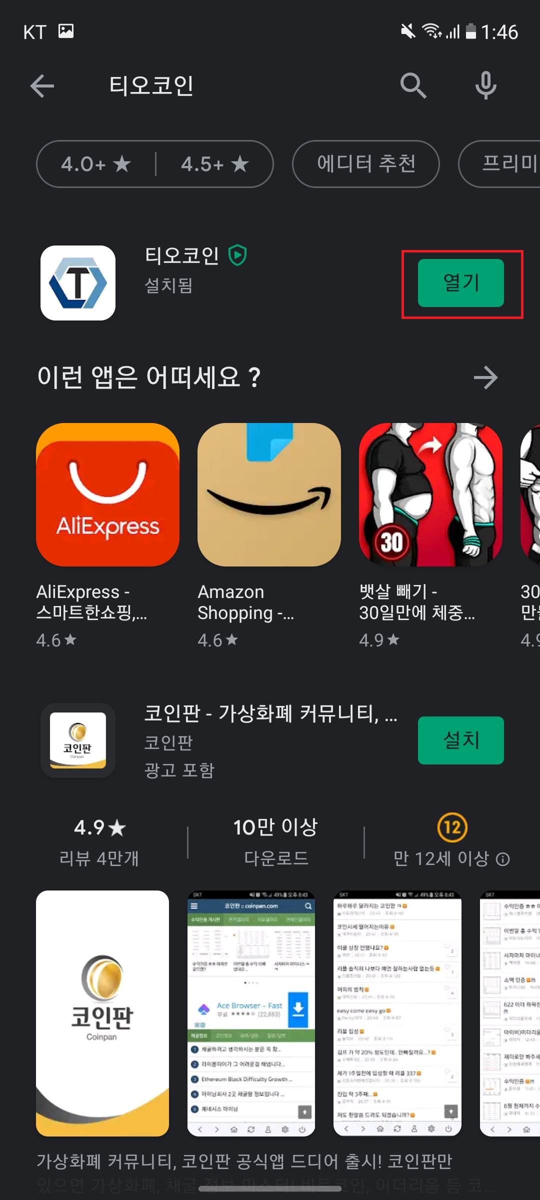 1. 앱 설치 (티오코인 앱)