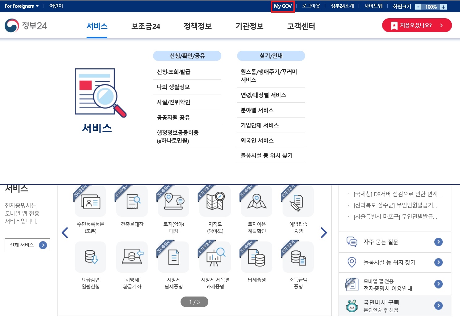 정부의 서비스, 민원, 정책·정보를 통합·제공하는 대한민국 정부 대표포털
