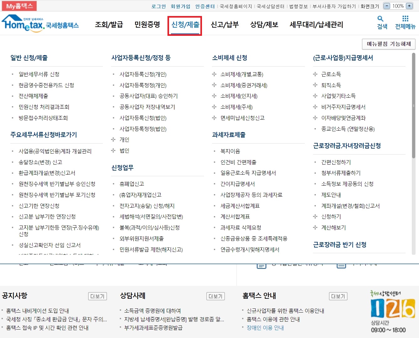 - 인증센터 - "인증서발급 동의 조회/신청"을 눌러 줍니다.