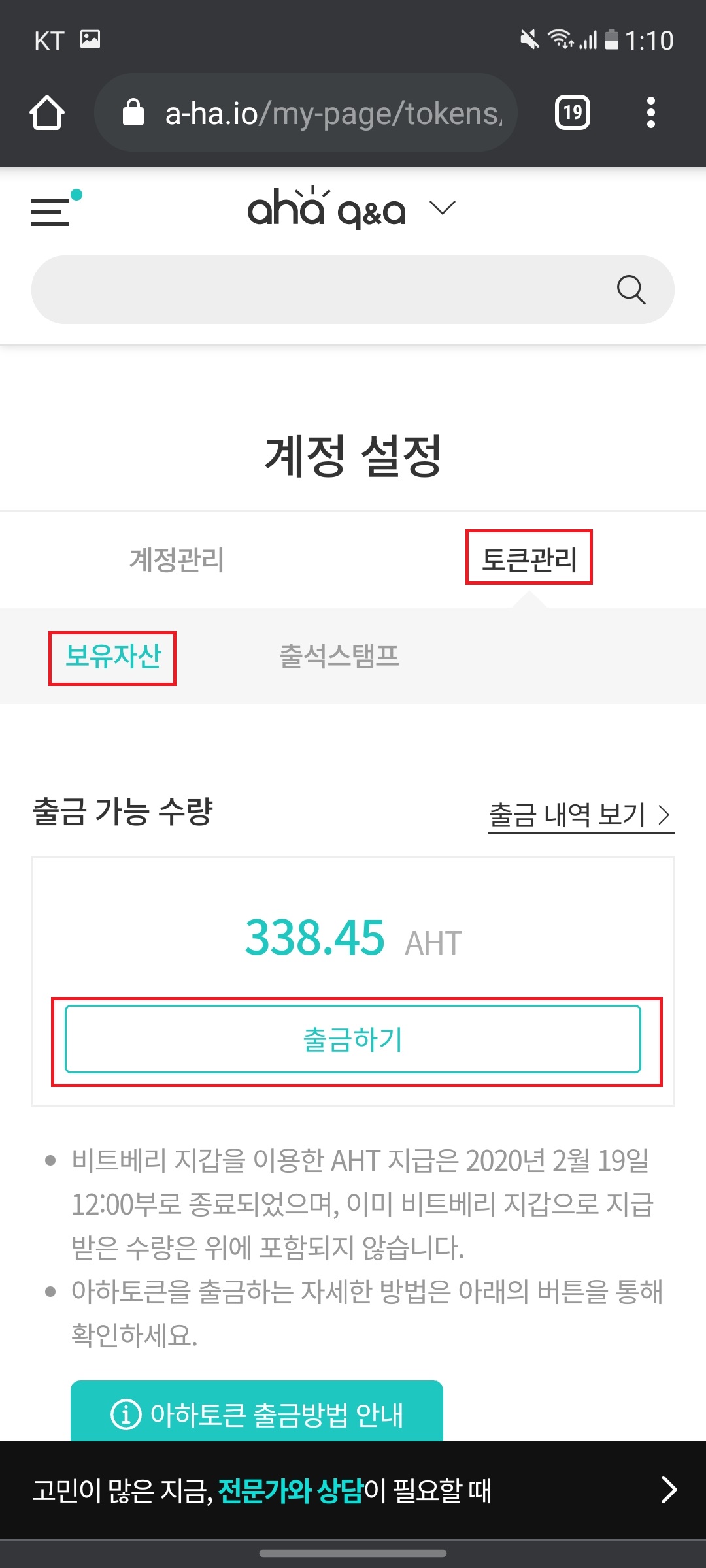 - 공식 출금 가이드 : https://www.a-ha.io/extras/asset-withdraw