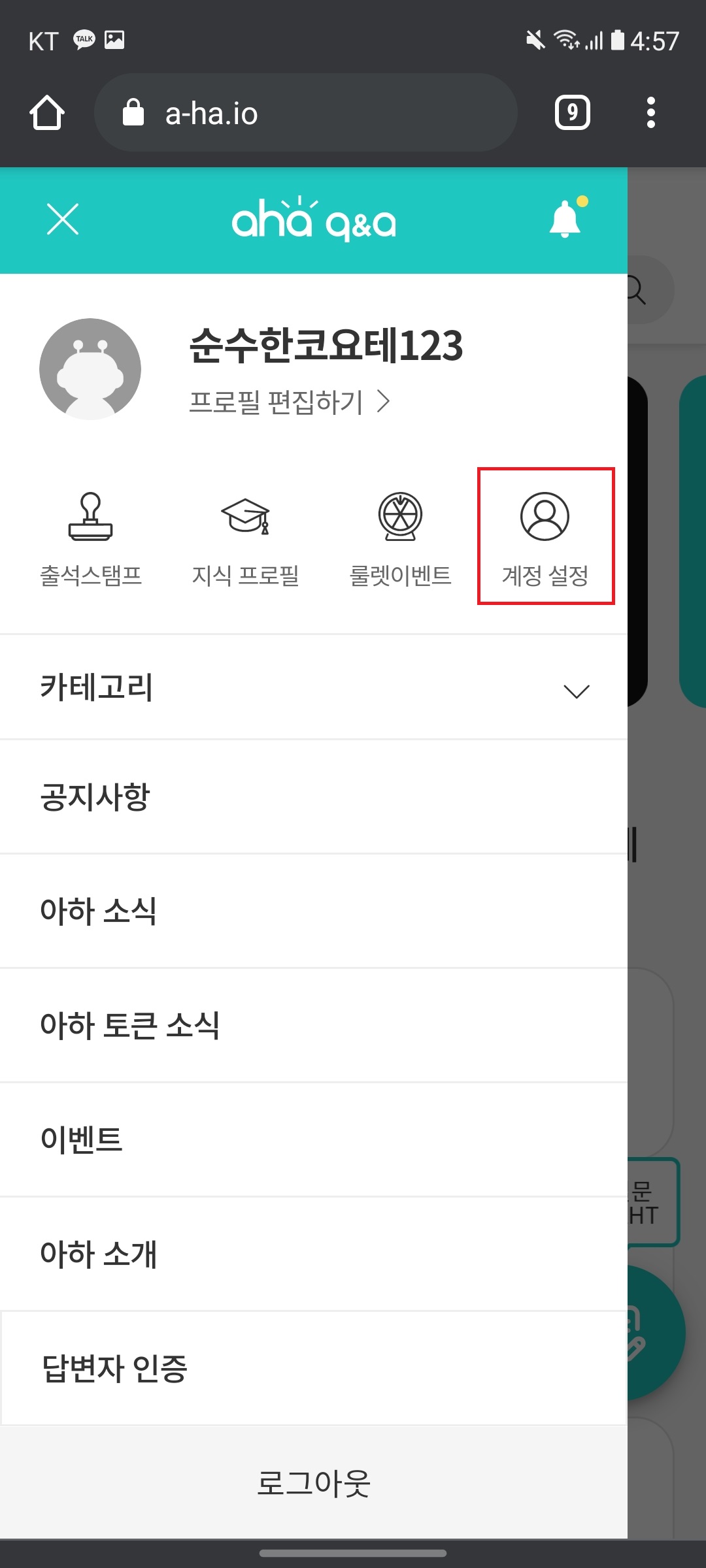 - 인터넷 검색창에서 "아하"를 검색합니다.